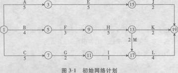 6、某工程項目合同工期為18個月。施工合同簽訂以后,施工單位編制了一份初始網絡計劃,如圖3—1所示(時間單位:月)。由于該工程施工工藝的要求,計劃中工作C、工作H和工作J需共用一臺起重施工機械,為此需要對初始網絡計劃做調整。