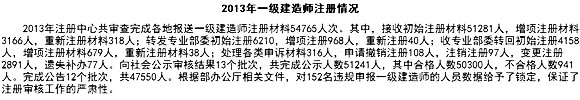 住建部的執業資格注冊中心,在2013年12月底發布了一個簡報,算是對于今年的一個總結吧。中間有這么一段關于一建的數據: