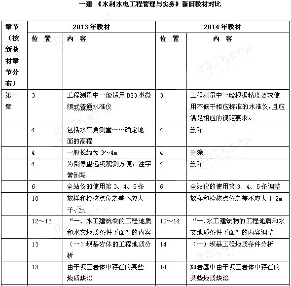 編者按:2014年一級建造師水利水電實務教材變化解析,專業、權威,希望對大家有所幫助!