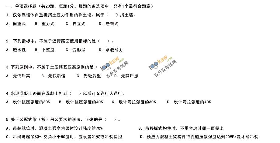 2012年一級建造師《市政公用工程》完整答案4