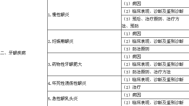 2015口腔助理醫師牙周病學考試大綱