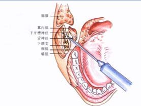 5.下牙槽神經阻滯麻醉時注射針進針深度為 ( )![]() |