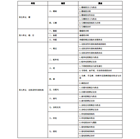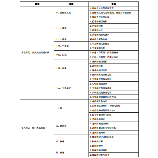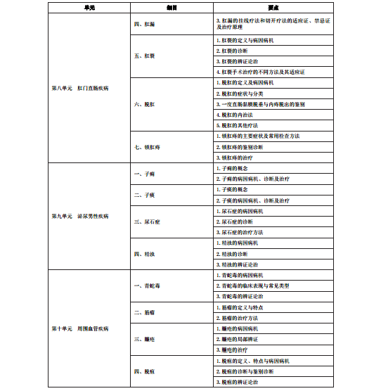 2020年中醫助理醫師《中醫外科學》考試大綱